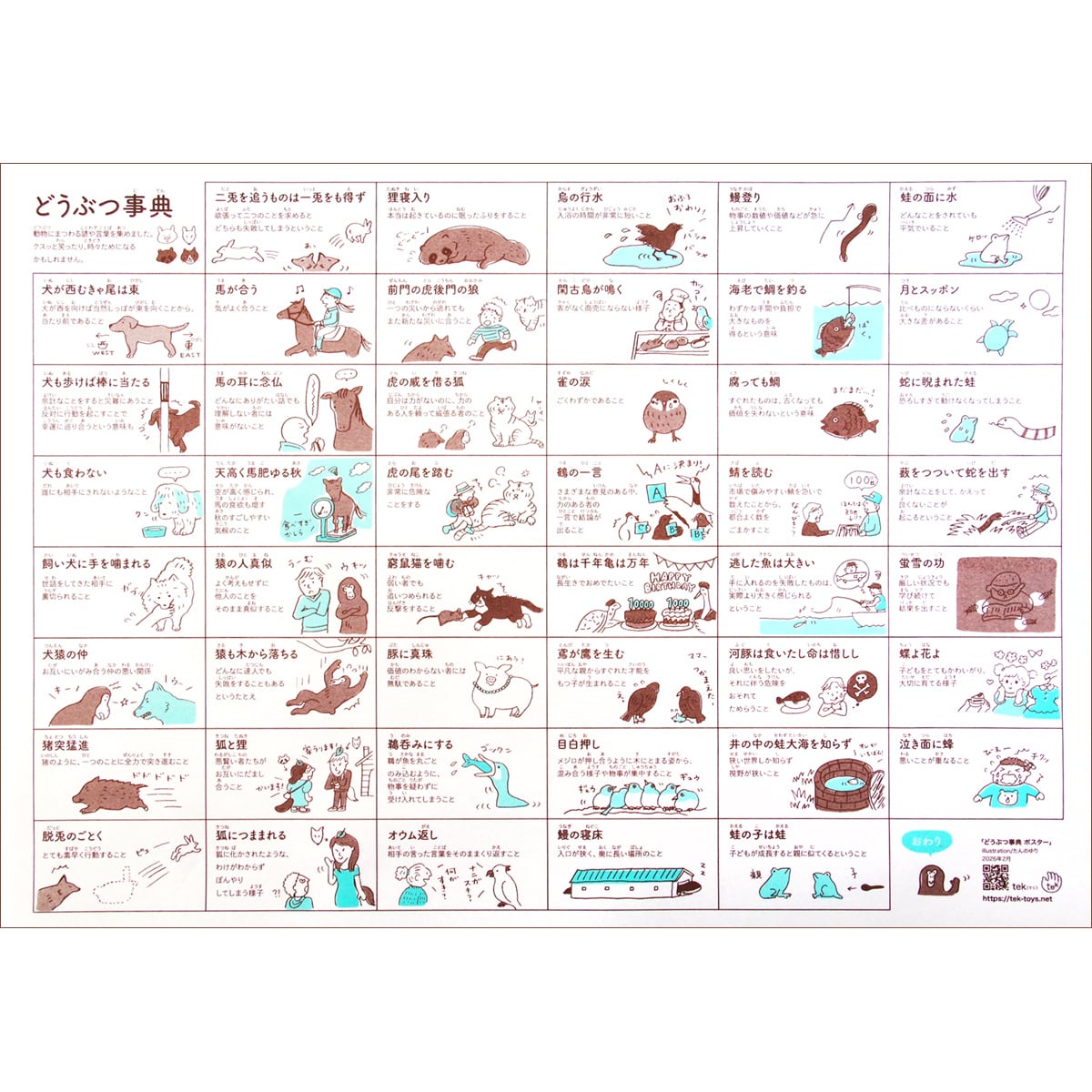 動物にまつわる言葉や諺(ことわざ)を集めたどうぶつ事典ポスターです。